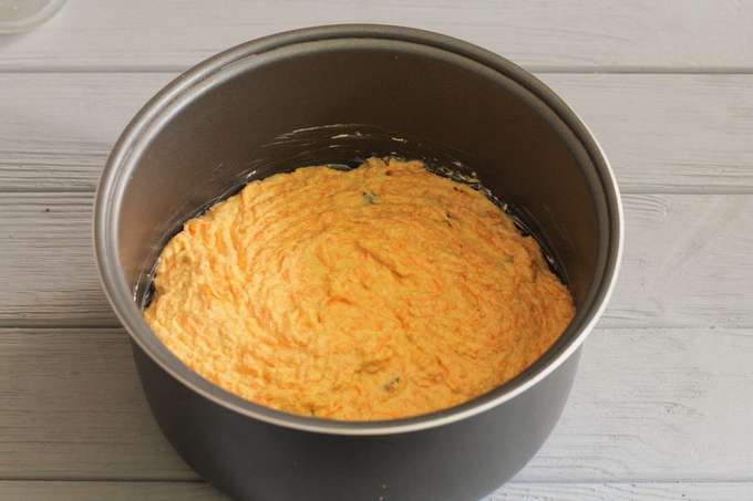 - Smeer de multicookerkom met plantaardige olie. Ook het worteldeeg voor de taart smeren we hier uit.
