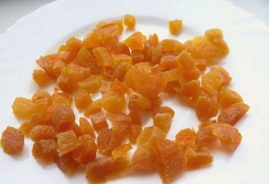 - Je kunt ook gedroogde abrikozen aan het gerecht toevoegen. Het wordt aanbevolen om het in kleine blokjes te snijden.