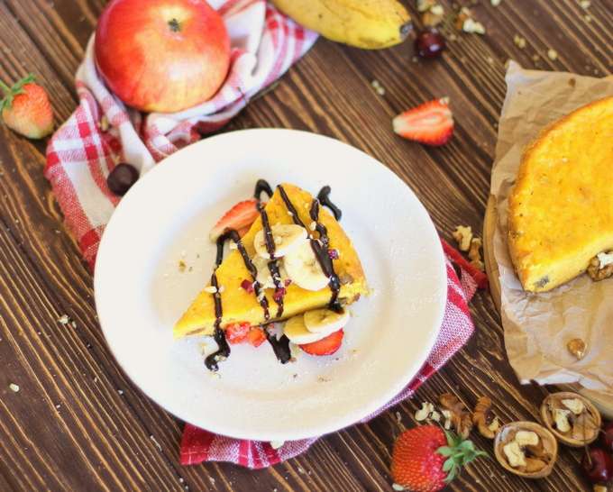 - Haal de hete braadpan voorzichtig uit de kom. Verdeel het in porties en serveer. Het gerecht kan naar smaak worden versierd met fruit of bessen. Klaar!