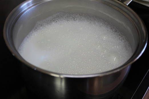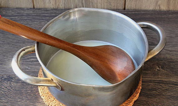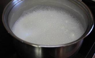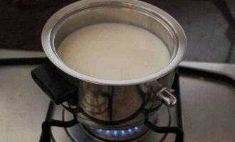 - Combineer suiker en melk in een aparte container, af en toe roeren, breng aan de kook en laat afkoelen.