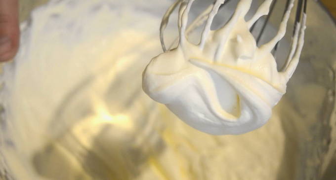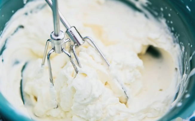 - Klop de afgekoelde room met een mixer tot er zachte pieken ontstaan.
