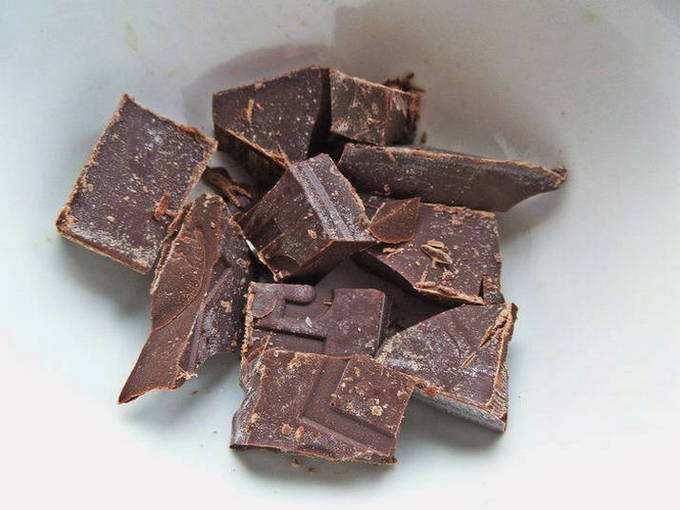 - Breek de chocolade in stukjes en voeg toe aan de verwarmde melk, roer tot de chocolade volledig is opgelost.