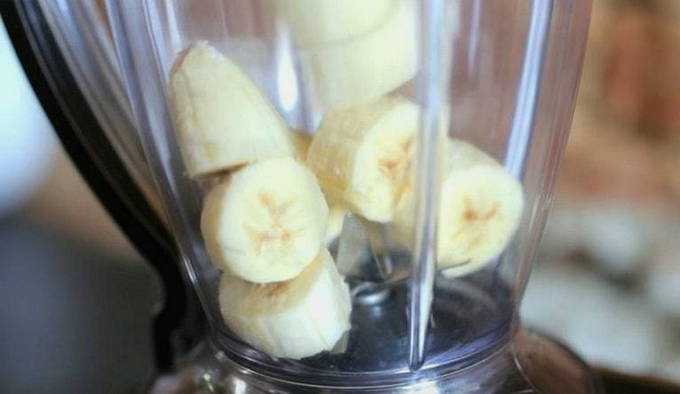 - Daarna brengen we de stukjes banaan naar een blender en malen.