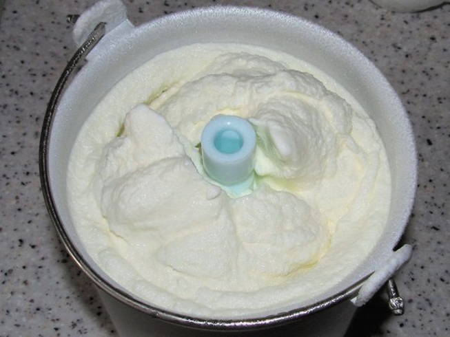 - IJs wordt ongeveer 50 minuten gekookt, waarna een speciale spatel constant de inhoud van de ijsmachine mengt, zodat het dessert van een delicate consistentie en zonder ijs blijkt te zijn.