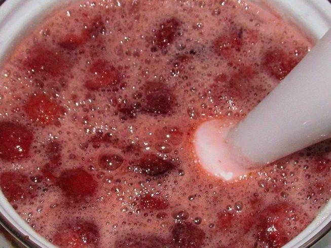 - Maak van de bessen aardappelpuree met gewone en vanillesuiker met een blender.