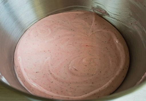 - Voeg yoghurt en room toe aan de bessenpuree, klop het mengsel tot een luchtige room 3-4 minuten is.