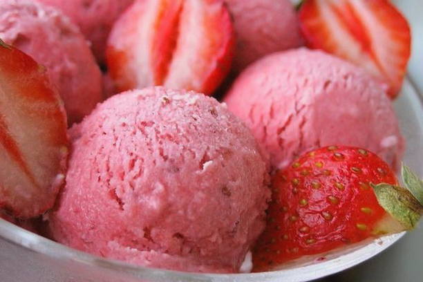 - Delicaat en heerlijk ijs gemaakt van room en aardbeien thuis