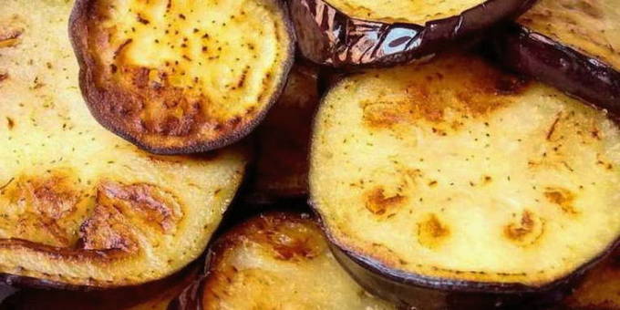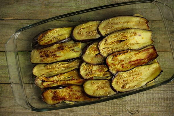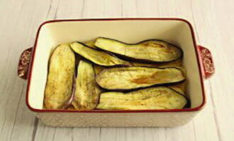 - Snijd de aardappelen in plakjes, de aubergines in reepjes. Bak groenten in plantaardige olie aan beide kanten goudbruin. Leg een laag aardappelen en aubergine op de bodem van een ovenvaste schaal.
