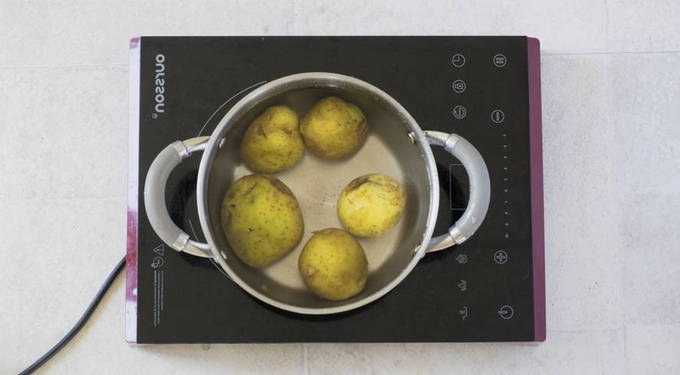 - Gekookte aardappelen - 2 stuks.