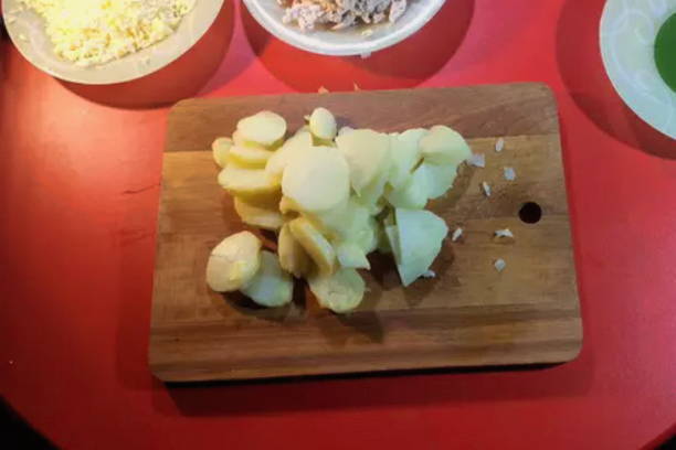 - Schil de aardappelen, was en snij in plakjes.