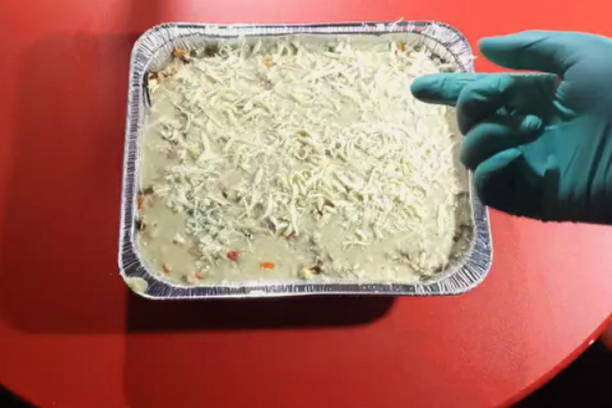- Meng de yoghurt en ricotta apart, voeg de nootmuskaat, zwarte peper, ei en zout toe en meng goed. Giet de saus in de vorm, voeg geraspte kaas toe.