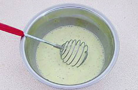 - Meng in een kom zure room, eieren, gemalen peper en zout.