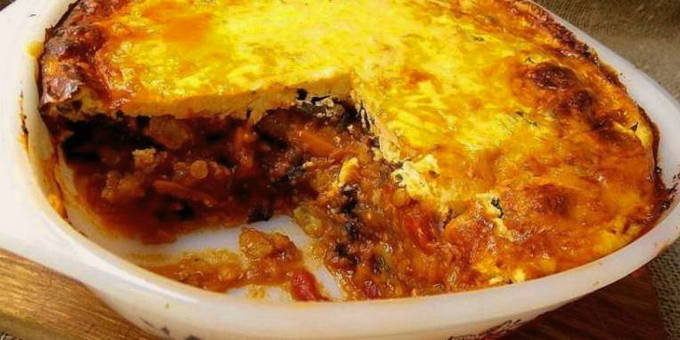 Een heldere vertegenwoordiger van de nationale Griekse keuken is moussaka met aubergine. Dit is een bladerdeegschotel met groenten en gehakt, gebakken met een romige saus.