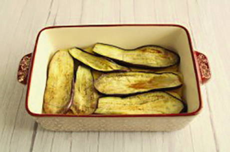 Leg vervolgens een laag van de helft van de gebakken aubergine.