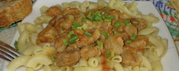 Beef stroganoff is een traditioneel Russisch varkensvleesgerecht in een sappige saus. Het gerecht blijkt lekker en bevredigend te zijn. U kunt elk bijgerecht kiezen volgens uw voorkeur.