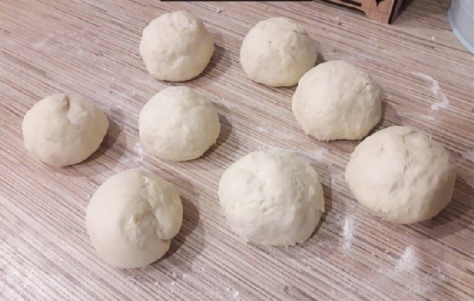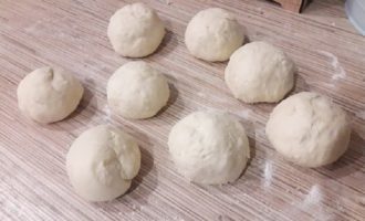 - Verdeel het deeg in 12-16 stukken, rol er balletjes van, leg ze op een bord en leg ze afgedekt met een servet 2-3 uur in de koelkast.