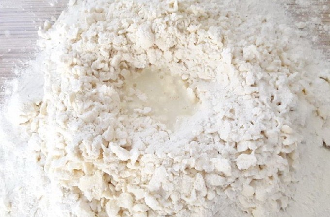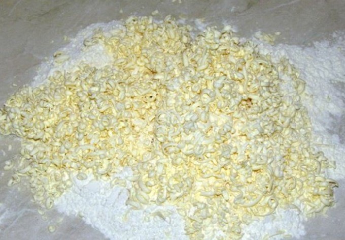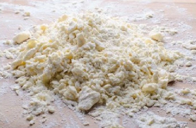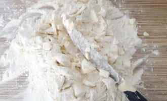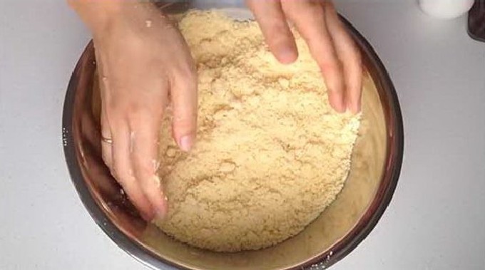 - Meng de geraspte boter snel met bloem en vang het op een hoop op.