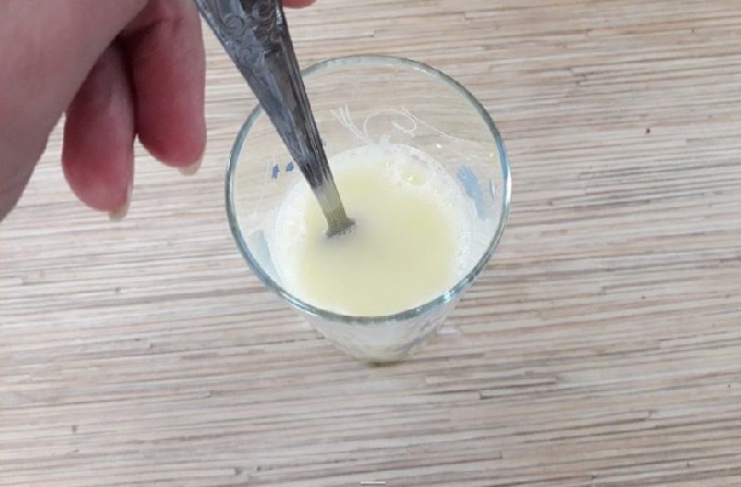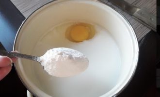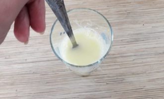 - Breek twee eieren in een aparte maatbeker, voeg zout, anderhalve eetlepel 7% azijn en een glas (220 ml) water toe, bij voorkeur ijskoud. Klop alles met een mixer en plaats het resulterende mengsel in de koelkast.