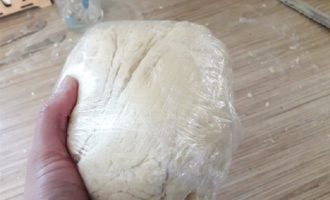 Wikkel het resulterende deeg in een stuk huishoudfolie en leg het 2 uur in de koelkast.