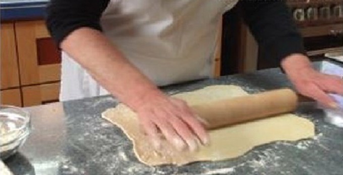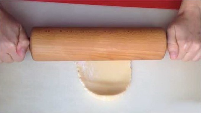 - Haal het broodje een voor een uit de koelkast en rol ze met een deegroller tot een dunne cake. Je kunt het deeg direct op een vel bakpapier uitrollen en op een bakplaat leggen.
