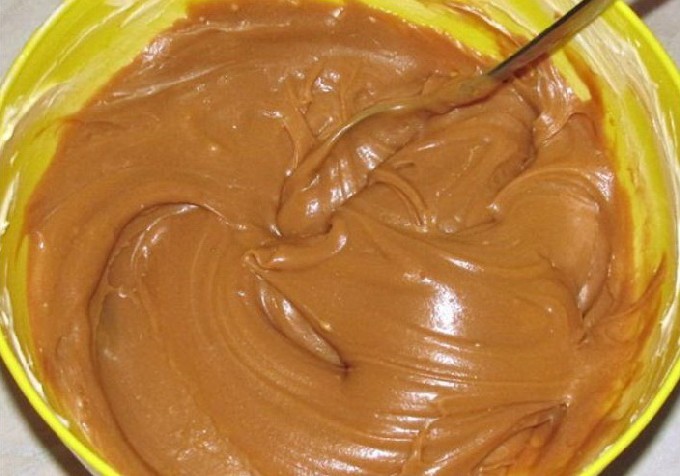 Haal vervolgens de bereide room van het vuur, koel af, doe de benodigde hoeveelheid boter erin en roer tot een gladde massa.