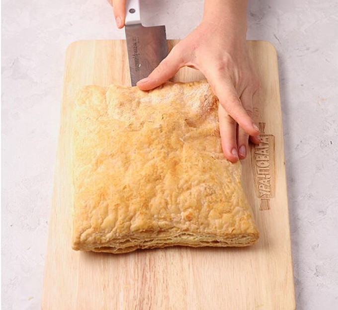 Van heerlijke Ushki bladerdeegkoekjes maak je snel een prachtige cake, vergelijkbaar met de populaire Napoleon cake. Koken met vla.