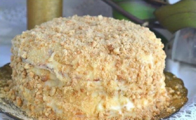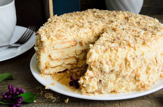 Eenvoudige en zeer smakelijke "Napoleon" gemaakt van koekjes "Ushki"