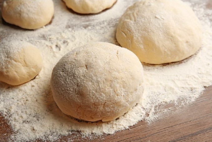 - Zeef de bloem door een zeef en meng met bakpoeder, voeg het dan in delen toe aan de wrongel en kneed het deeg met de hand. Het moet zacht zijn en niet aan je handen of de zijkant van de kom plakken. Dek het deeg af met een stuk huishoudfolie en zet het een half uur in de koelkast.