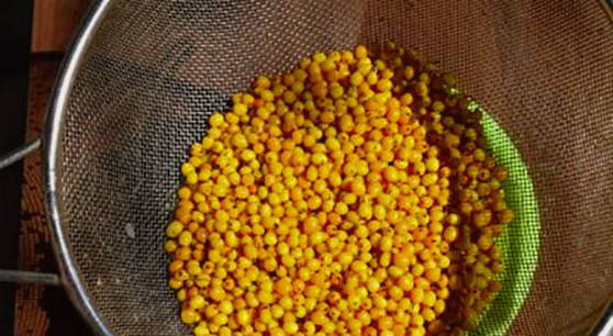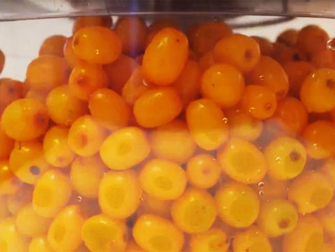 - Spoel de duindoorn af, gooi weg in een vergiet en droog.