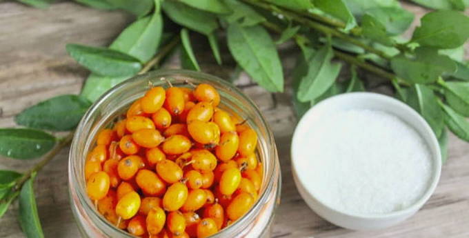 Duindoorn met suiker zonder koken om in de vriezer te bewaren