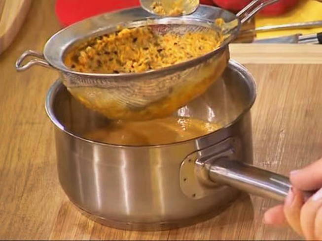 - Veeg de bessenmassa door een zeef, verwijder zaden en schil.
