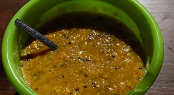 - Breng het dikke duindoornsap over in een grote container.