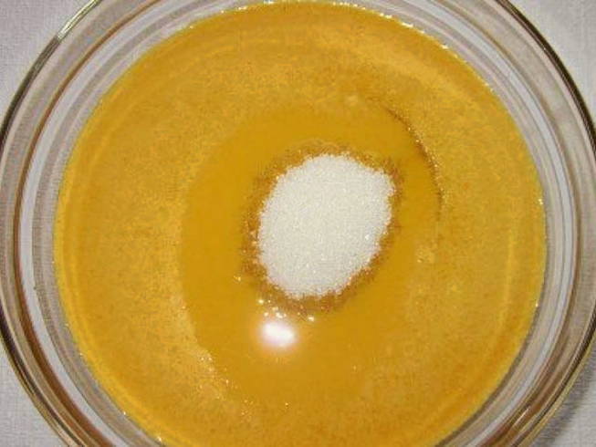 - Meng vervolgens de duindoornmassa met suiker. Roer de ingrediënten totdat de suiker volledig is opgelost.