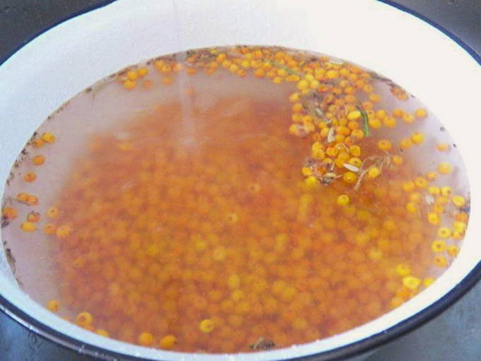 - Spoel de duindoorn af, gooi weg in een vergiet en droog.