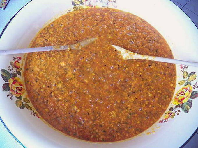 - Haal de bessen door een vleesmolen.