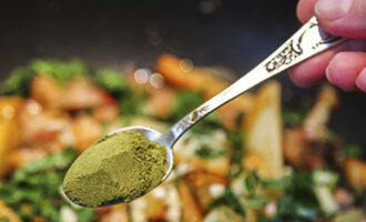 Strooi de utskho-suneli-kruiden over het gerecht en roer.