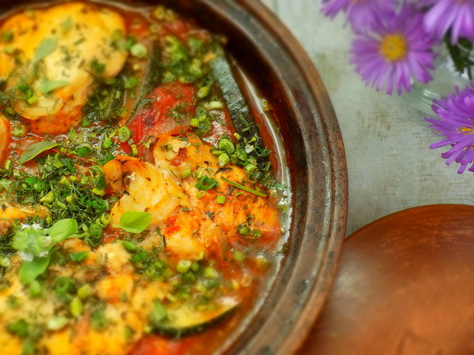 - Voeg 5 minuten voor het koken boter toe, zet het vuur laag en houd afgedekt. Bestrooi het afgewerkte gerecht voor het serveren met verse kruiden.