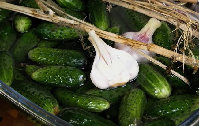 - Een eenvoudig en heerlijk recept voor komkommers met aspirine onder een nylon deksel