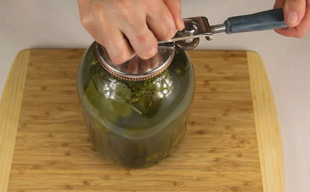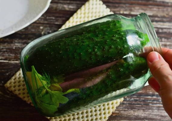 We koelen de komkommers door de pot ondersteboven te draaien en herschikken ze op een plaats die comfortabel is voor langdurige opslag.