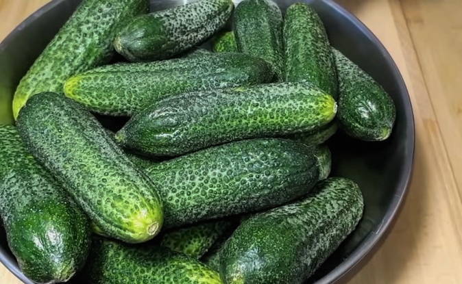 De smaak van komkommers onder een nylon deksel lijkt op groenten die in vaten zijn bereid. Je ruikt sprankelende zuurheid, matige scherpte en hoge knapperigheid. Dergelijke komkommers kunnen niet alleen als tussendoortje worden gebruikt, maar ook voor het maken van salades met augurk.