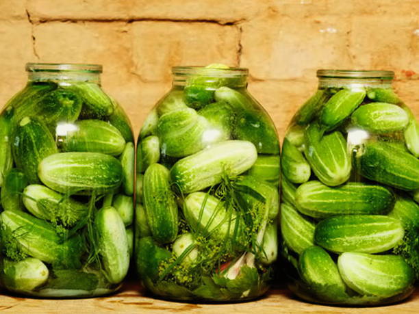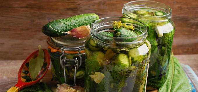 - Schik de komkommers in potten en giet er kokend water over. Laat 10 minuten trekken, laat het water weglopen en herhaal de procedure nog twee keer.