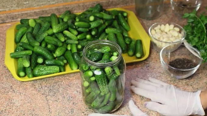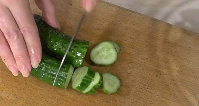 - Komkommers moeten enkele uren in koud water worden geplaatst en vervolgens worden gedroogd en de staarten worden verwijderd.