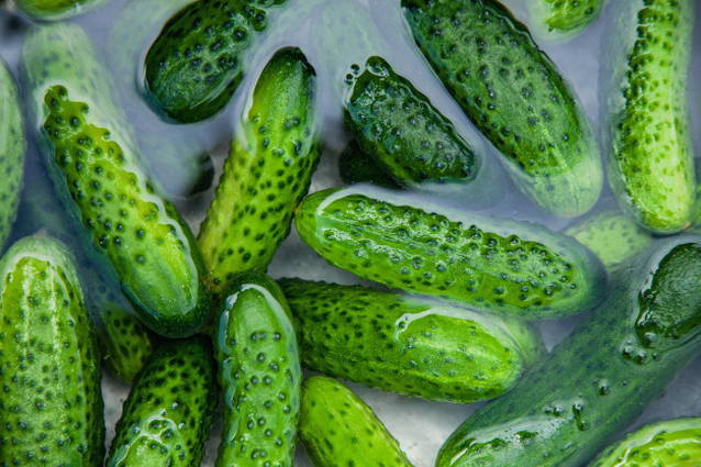 - Was komkommers en snij aan elk de uiteinden af. Week ze enkele uren in koud water, zodat ze na bewaring niet te veel marinade opnemen.