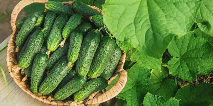 - Steriliseer de potten en doe de stukjes komkommer erin.