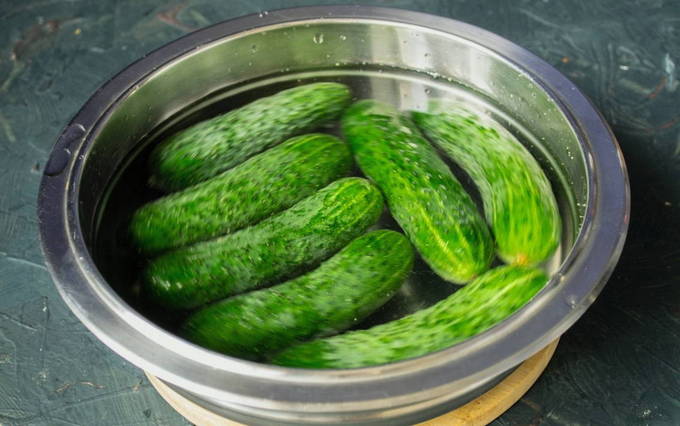 - Aanvankelijk laten we de verzamelde komkommers 3-4 uur weken.