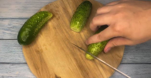 - Snijd voor gedroogde komkommers de uiteinden aan beide kanten af.