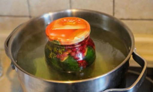 - We sluiten de potten meteen af met deksels en sturen ze op om te steriliseren zoals u dat gewend bent. We gaan een steelpan gebruiken.