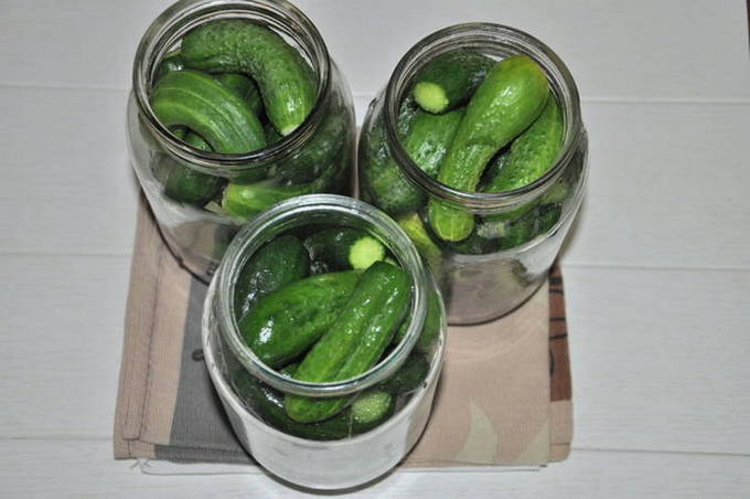 - We wassen de komkommers, snijden hun uiteinden af en stoppen ze stevig in voorbereide potten.