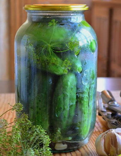 - We sluiten de pot af met een deksel en draaien hem om, bedekken hem met een deken totdat hij volledig is afgekoeld. Je kunt dergelijke ingemaakte komkommers op elke temperatuur bewaren.