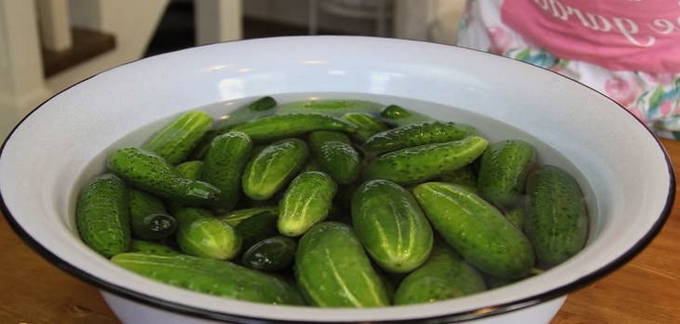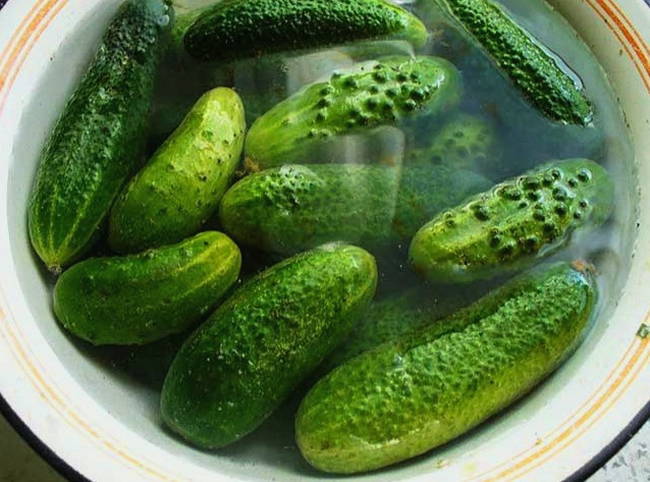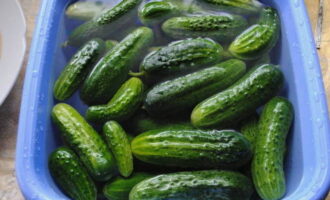 We wassen de komkommers en laten ze 2-3 uur in schoon koud water weken.